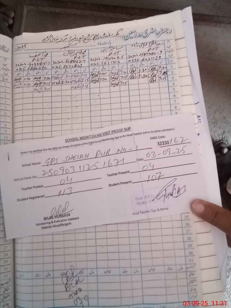 | EMIS Code: 32330162 | Name of School: GPS SHEIKH PUR NO. 1 | |||