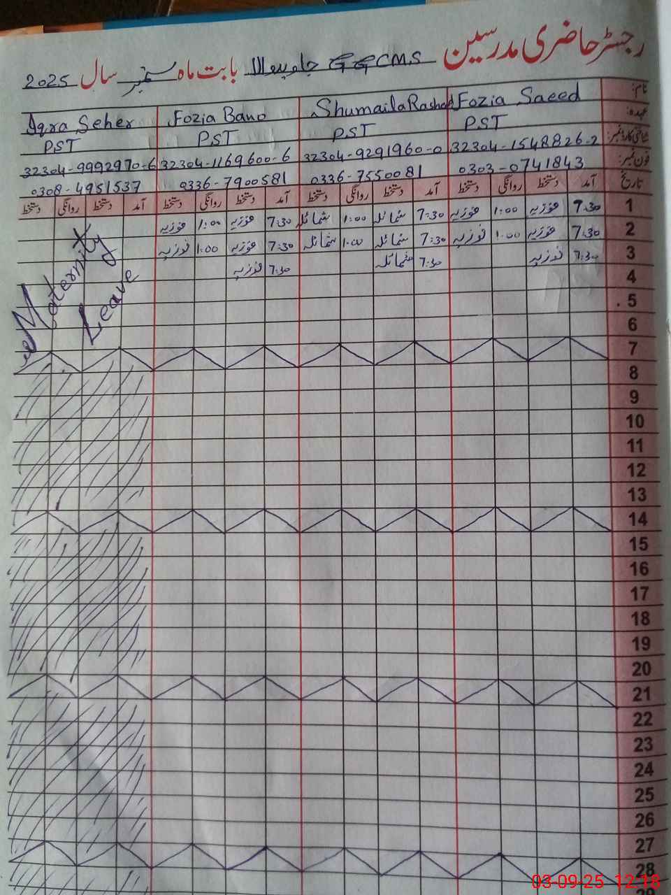 | 32**** | Iq**** Sa**** | PST | Regular | 0 | 0 | 0 | 0 | 0 | 0 | 0 | 0 | 0 | Maternity |