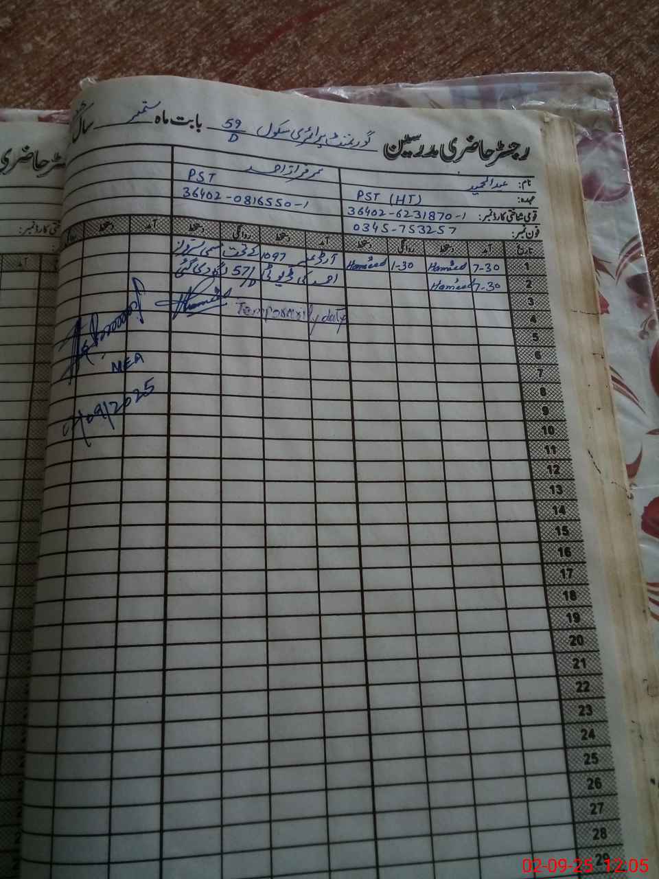 | Name: AB**** HA**** Designation: (School Headmaster's/Headmistress's) PST Phone/Cell Number: 03**** |