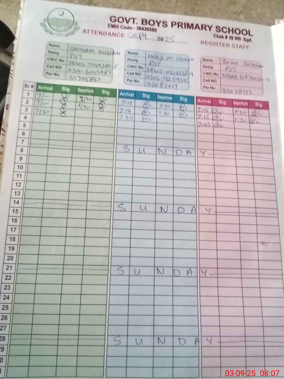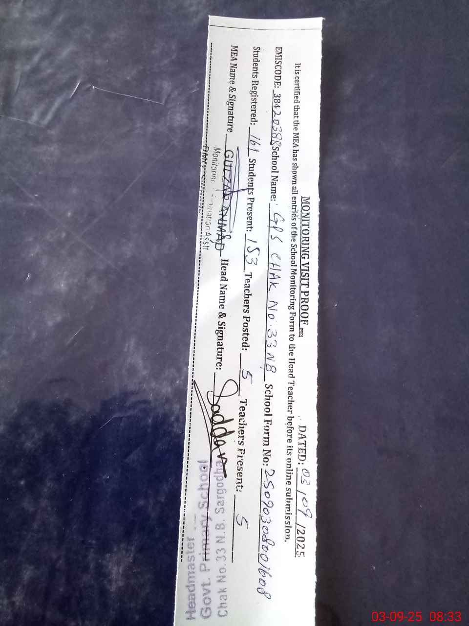 | EMIS Code: 38420388 | Name of School: GPS CHAK NO.33 NB | |||