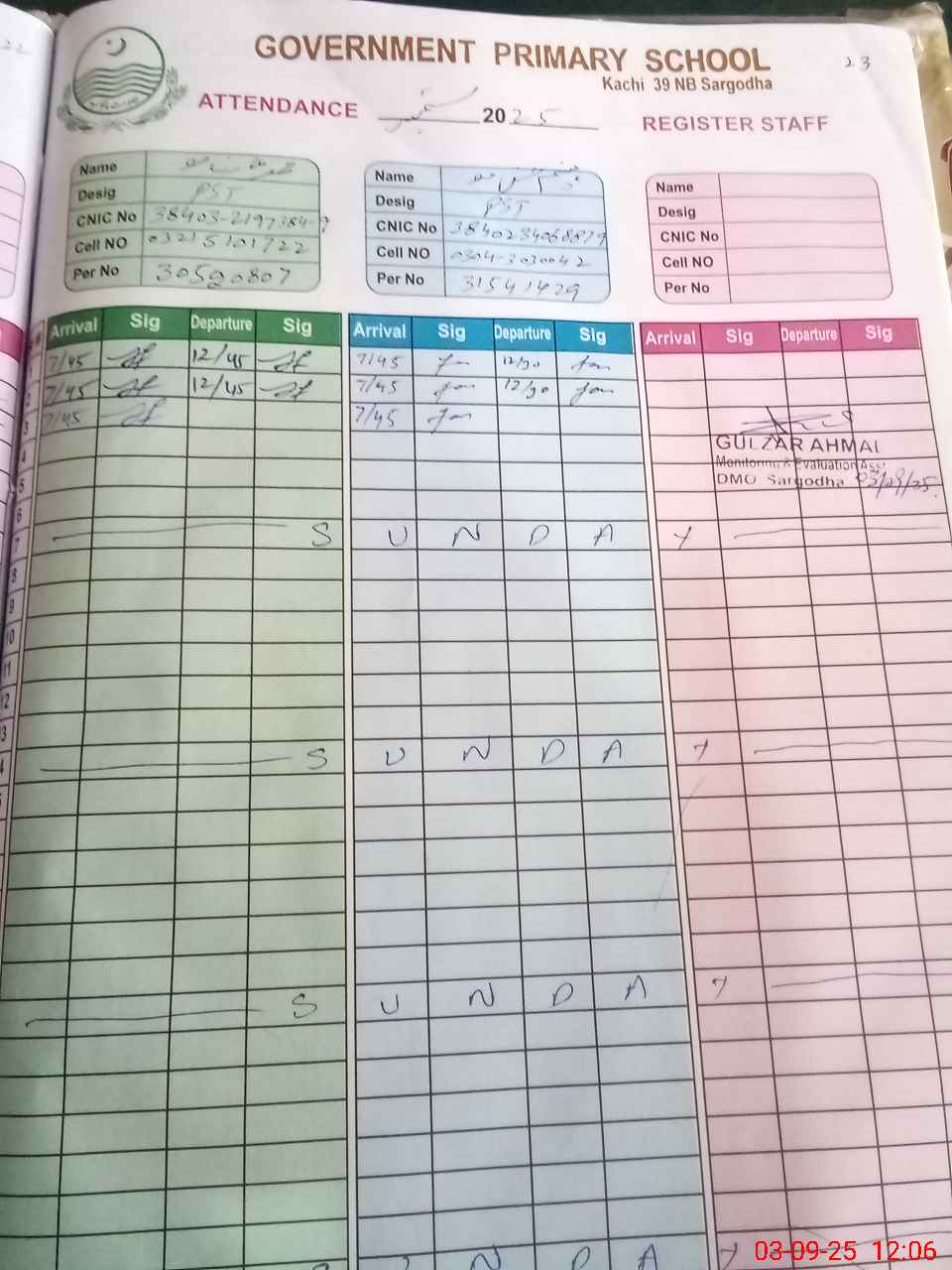 | Name: MU**** HA**** UL**** Designation: (School Headmaster's/Headmistress's) PST Phone/Cell Number: 03**** |