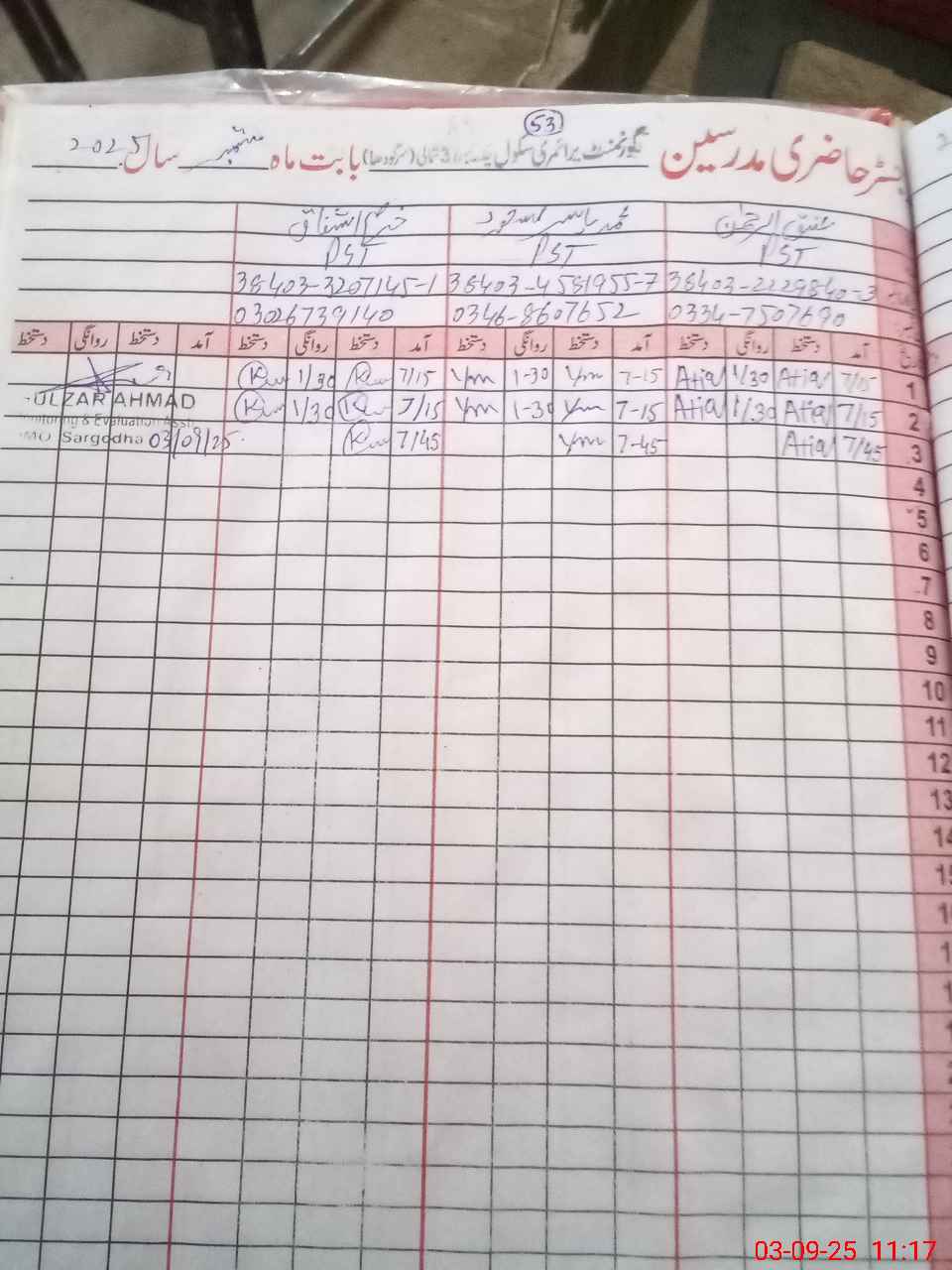 | Name: AT**** URRE**** Designation: (School Headmaster's/Headmistress's) PST Phone/Cell Number: 03**** 75**** |