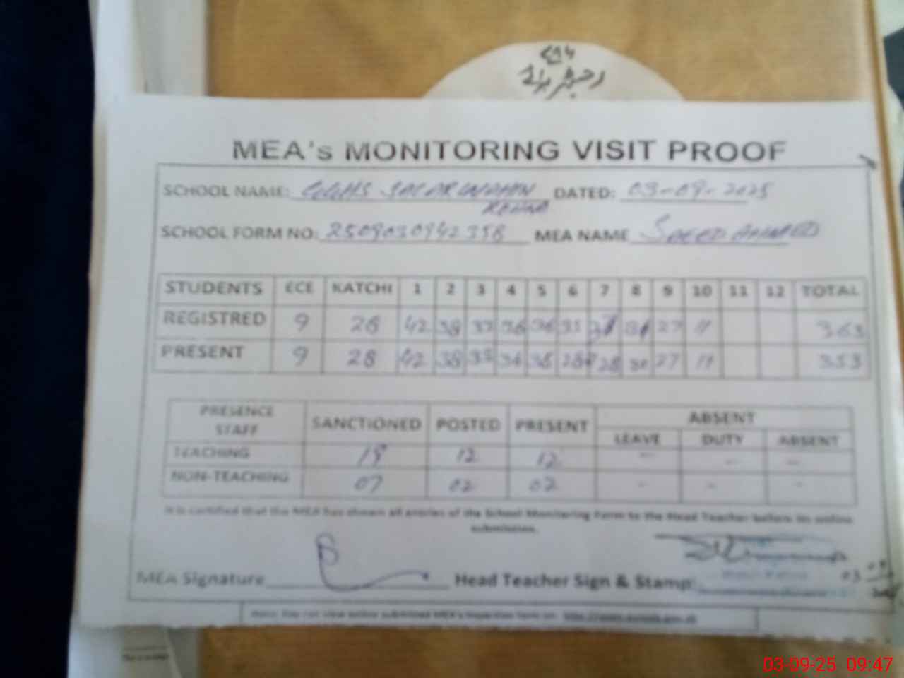 | EMIS Code: 36410489 | Name of School: GGHS SALAR WAHIN KOHNA NAWAN SHEHR | |||