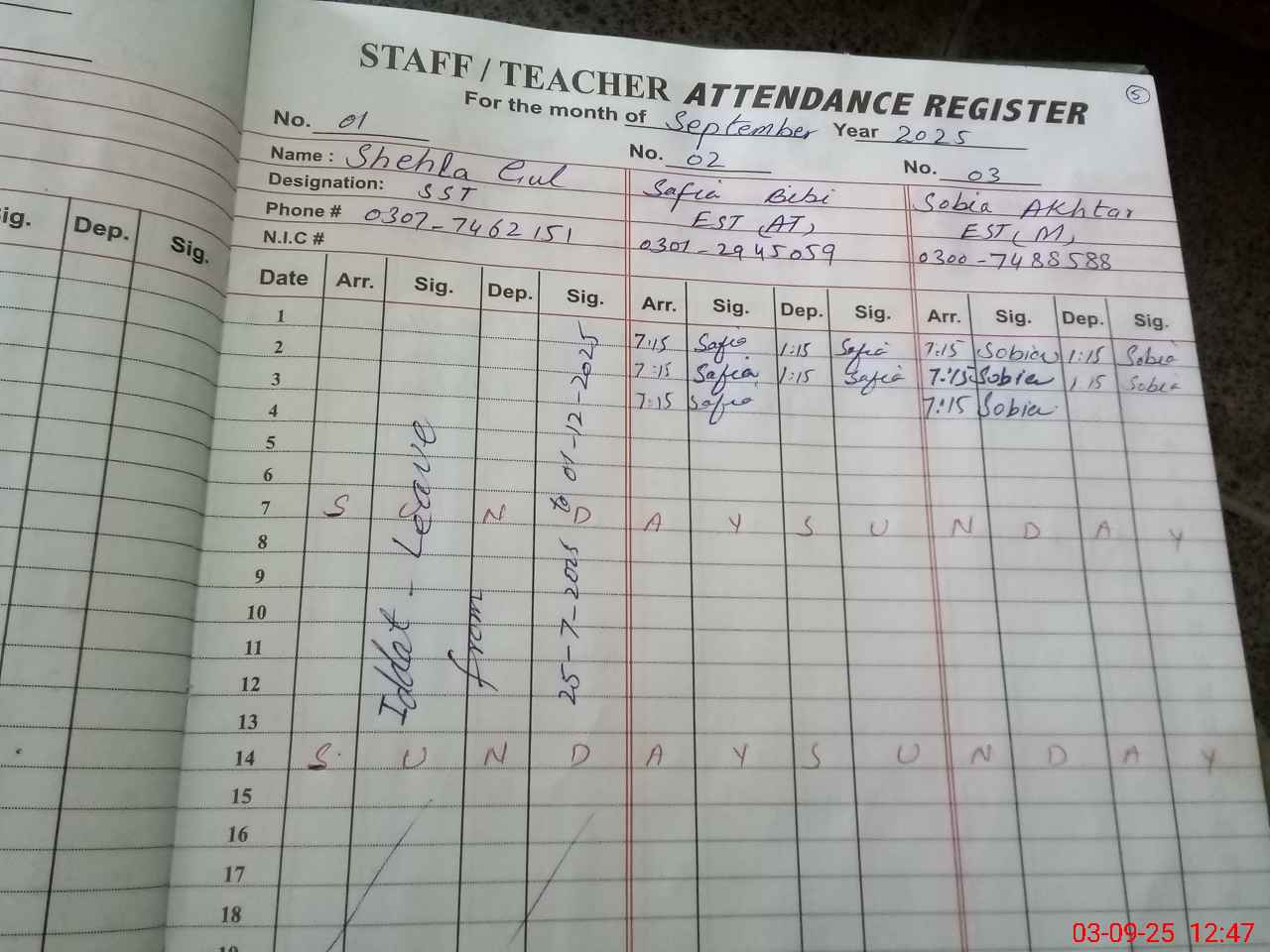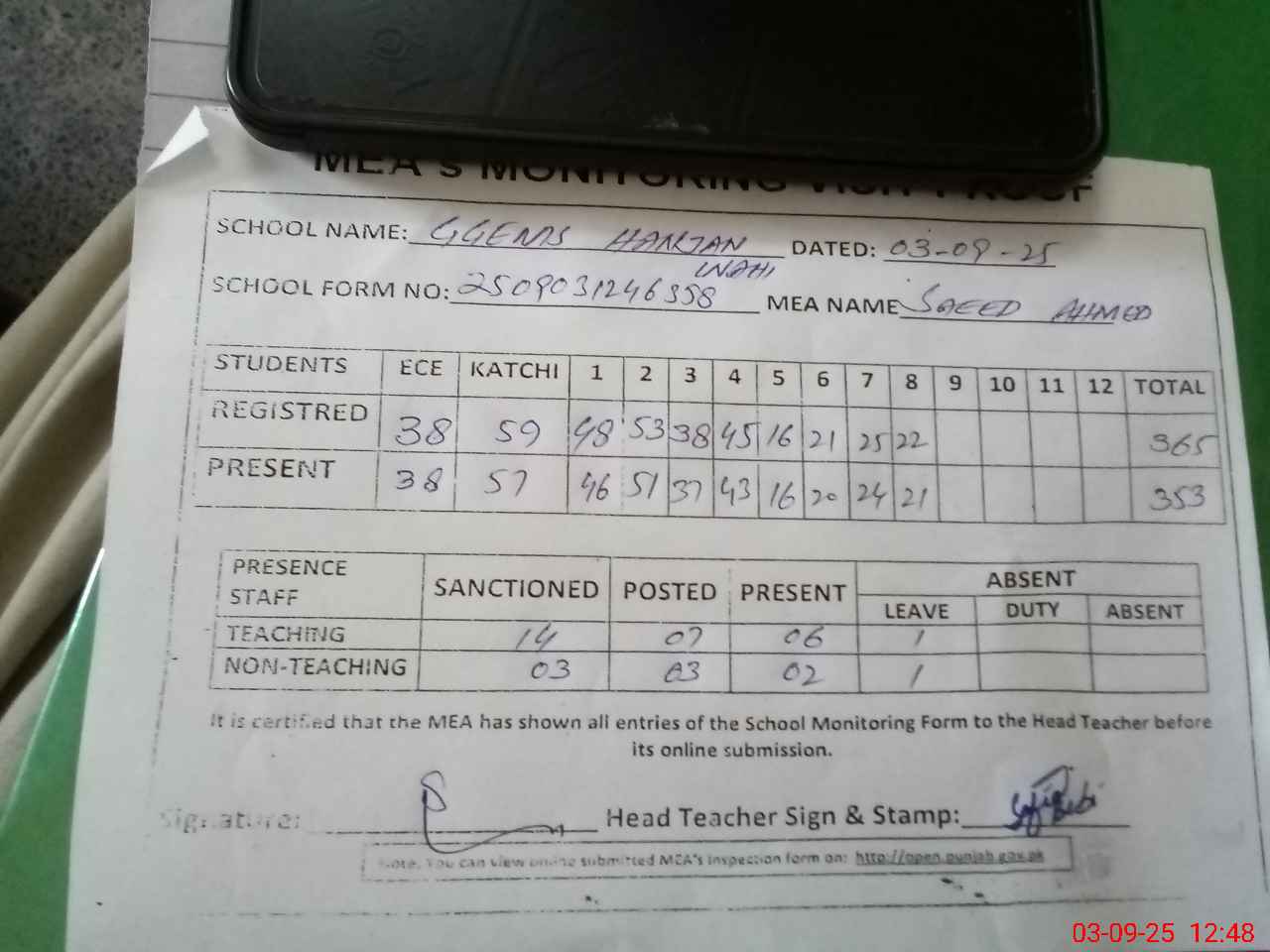 | Name: SH**** GU**** Designation: (School Headmaster's/Headmistress's) S.S.T.(G) Phone/Cell Number: 03**** |