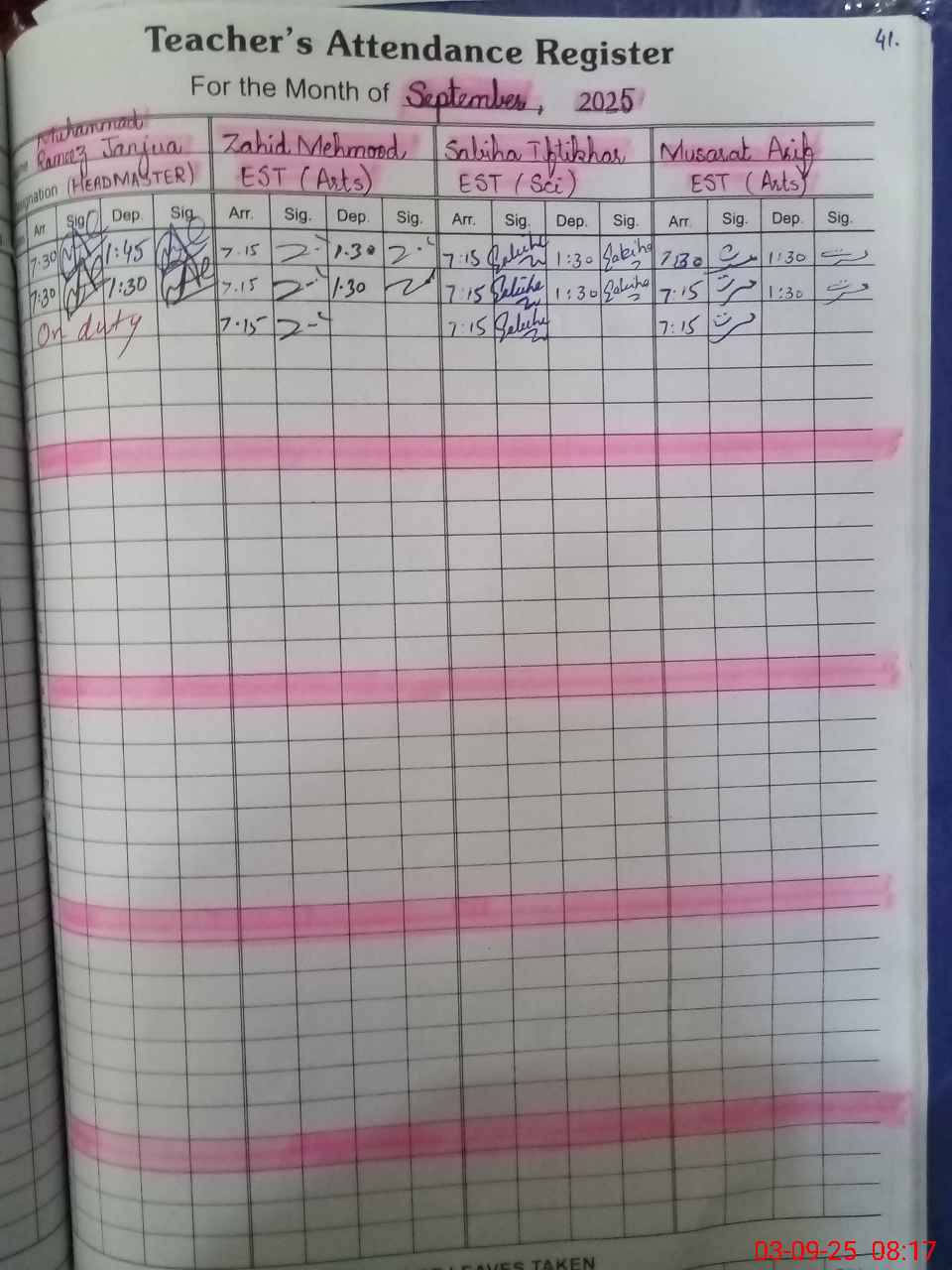 | Monitoring Date: 03-09-2025 | Start Time: 03-09-2025 08:00 AM | End Time: 03-09-2025 08:48 AM | Name of MEA: Ra**** Ra**** Al**** | |
