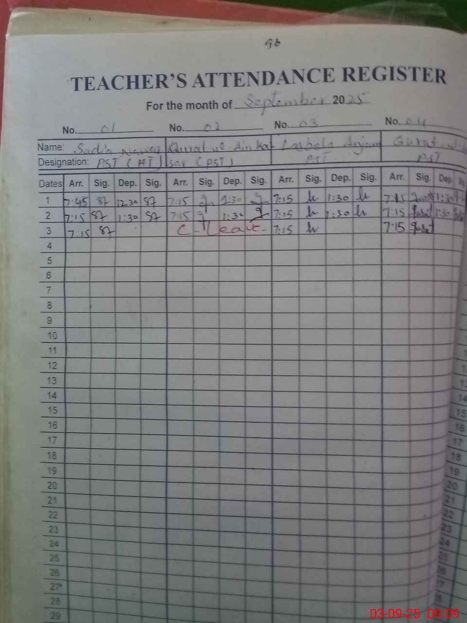 | Name: SA**** NA**** Designation: (School Headmaster's/Headmistress's) PST Phone/Cell Number: 03**** |
