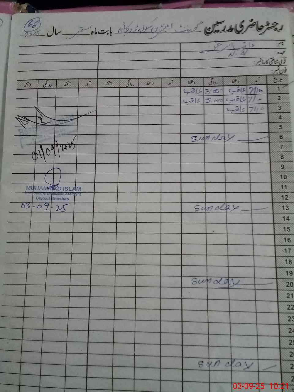 | Name: Ha**** Gh**** Mu**** Designation: (School Headmaster's/Headmistress's) SST G Phone/Cell Number: 03**** |