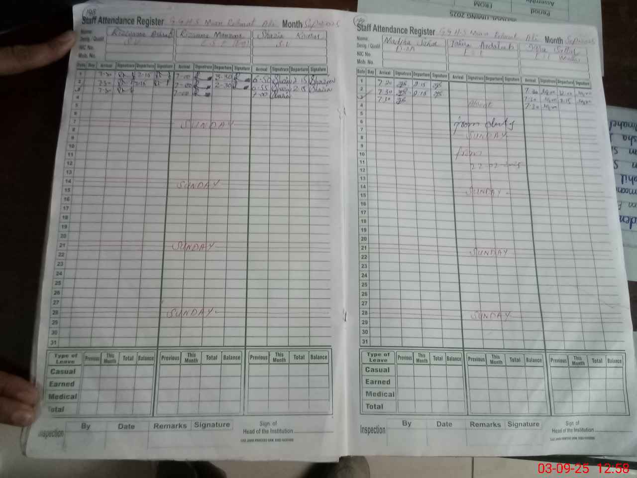 | CNIC | Full Name | Designation | R/C | Absence During Last Calender Month |