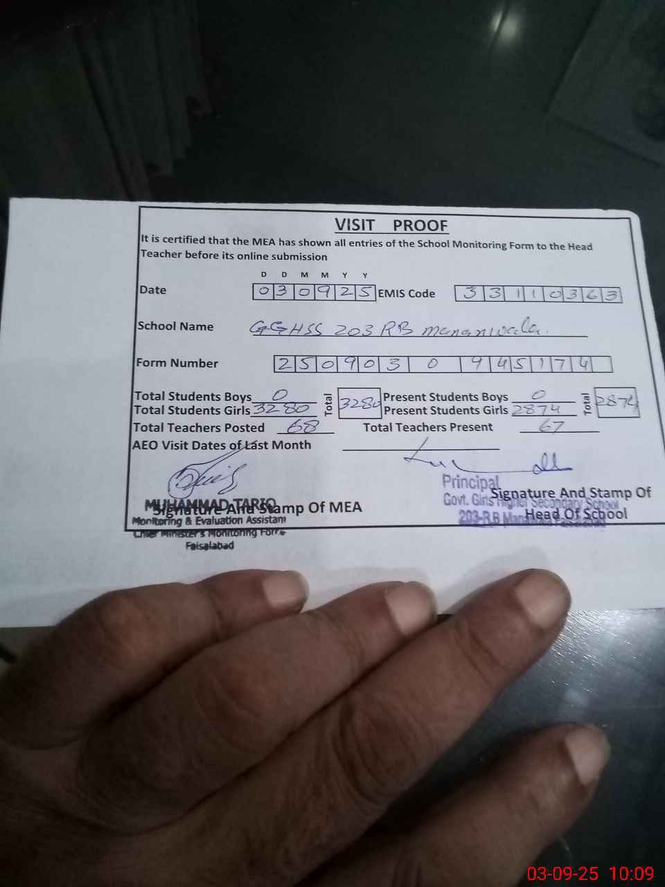 | EMIS Code: 33110363 | Name of School: GGHSS 203/RB MANAWALA FSD | |||