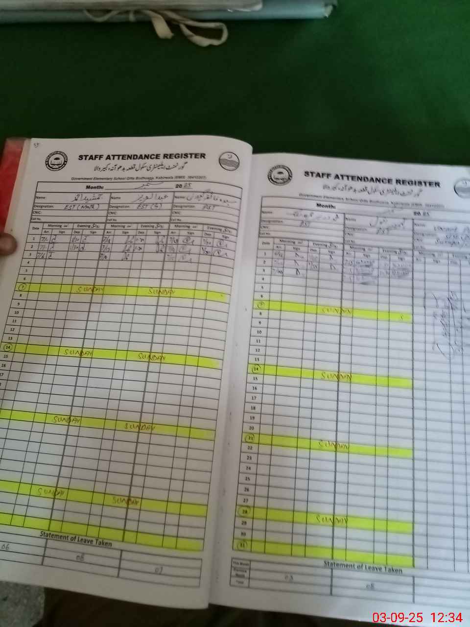 | CNIC | Full Name | Designation | R/C | Absence During Last Calender Month |