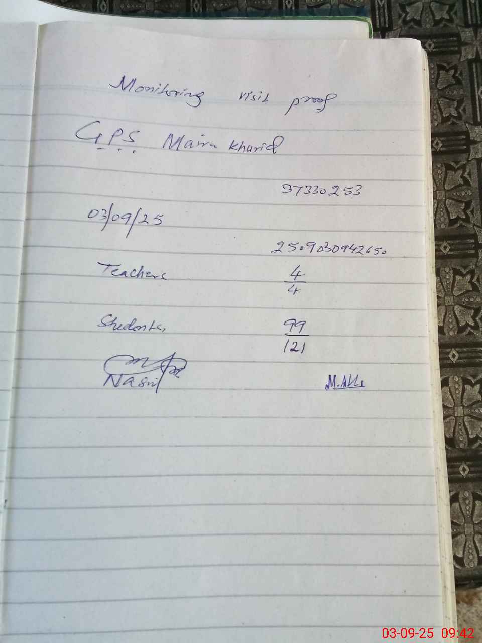 | EMIS Code: 37330253 | Name of School: GPS MAIRA KHURD | |||