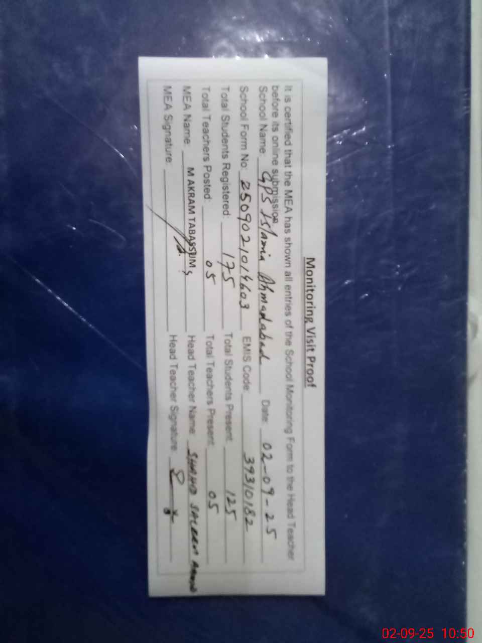 | EMIS Code: 39310182 | Name of School: GPS ISLAMIA AHMED ABAD | |||