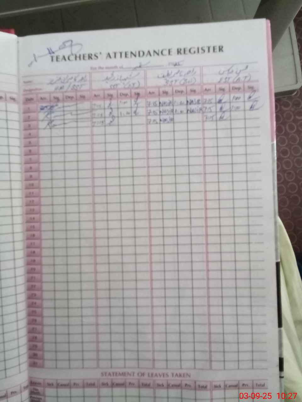 | Leave | Duty | Absent | Maternity | Medical | Ex- Pak |