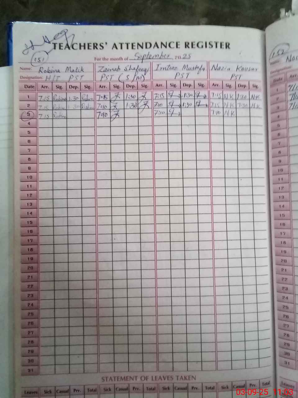 | Name: Ru**** Ma**** Designation: (School Headmaster's/Headmistress's) HEADMISTRESS Phone/Cell Number: 03**** |