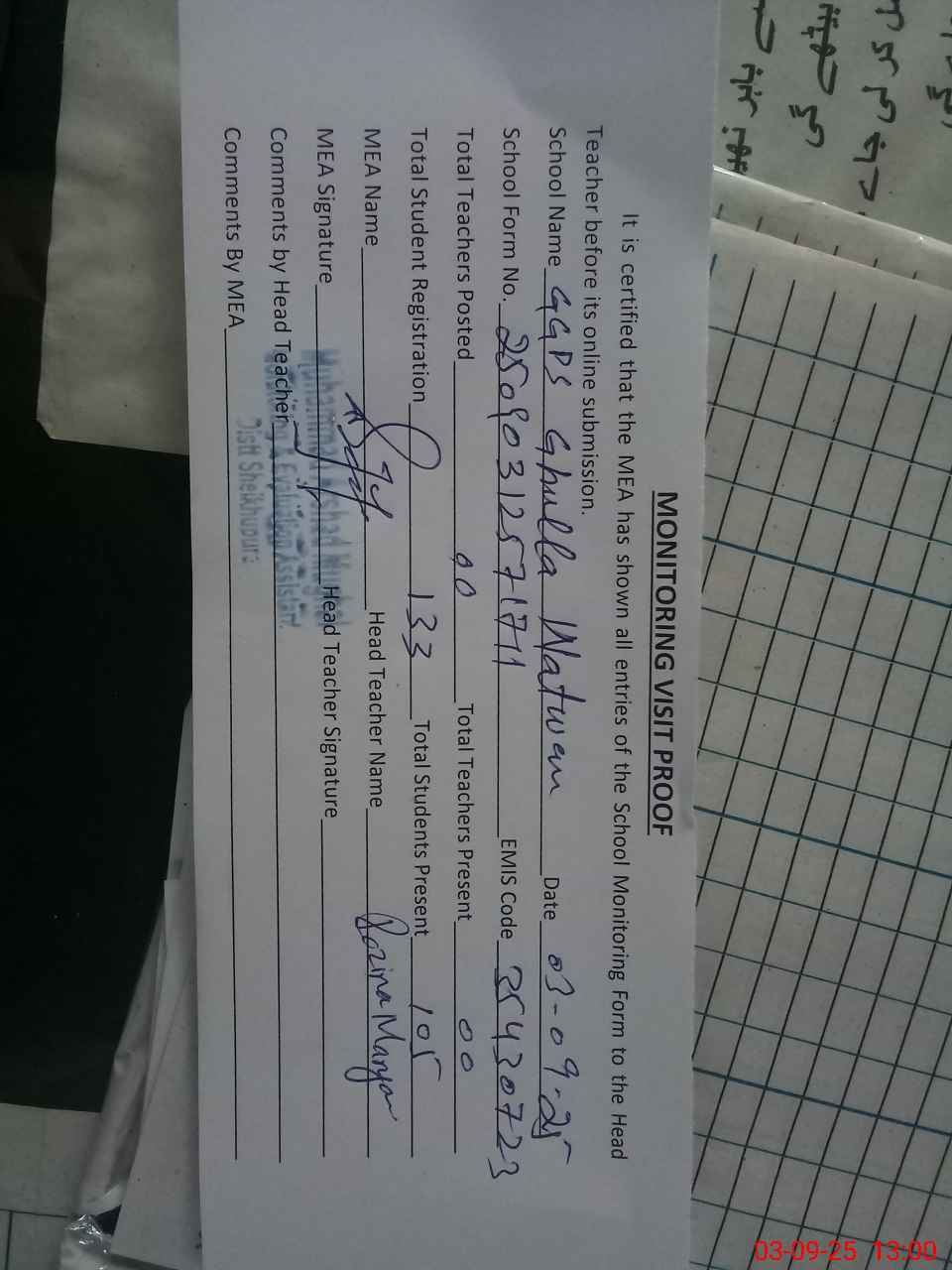 | EMIS Code: 35430723 | Name of School: GGPS GHULLAH WATTOWAN | |||