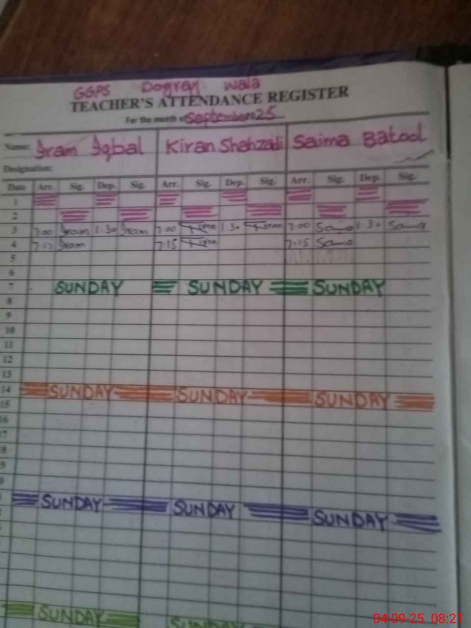 | CNIC | Full Name | Designation | R/C | Absence During Last Calender Month |