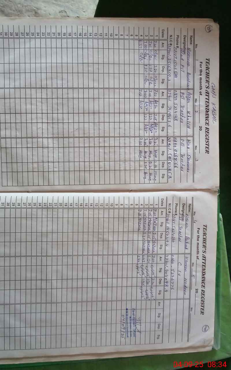 | CNIC | Full Name | Designation | R/C | Absence During Last Calender Month |