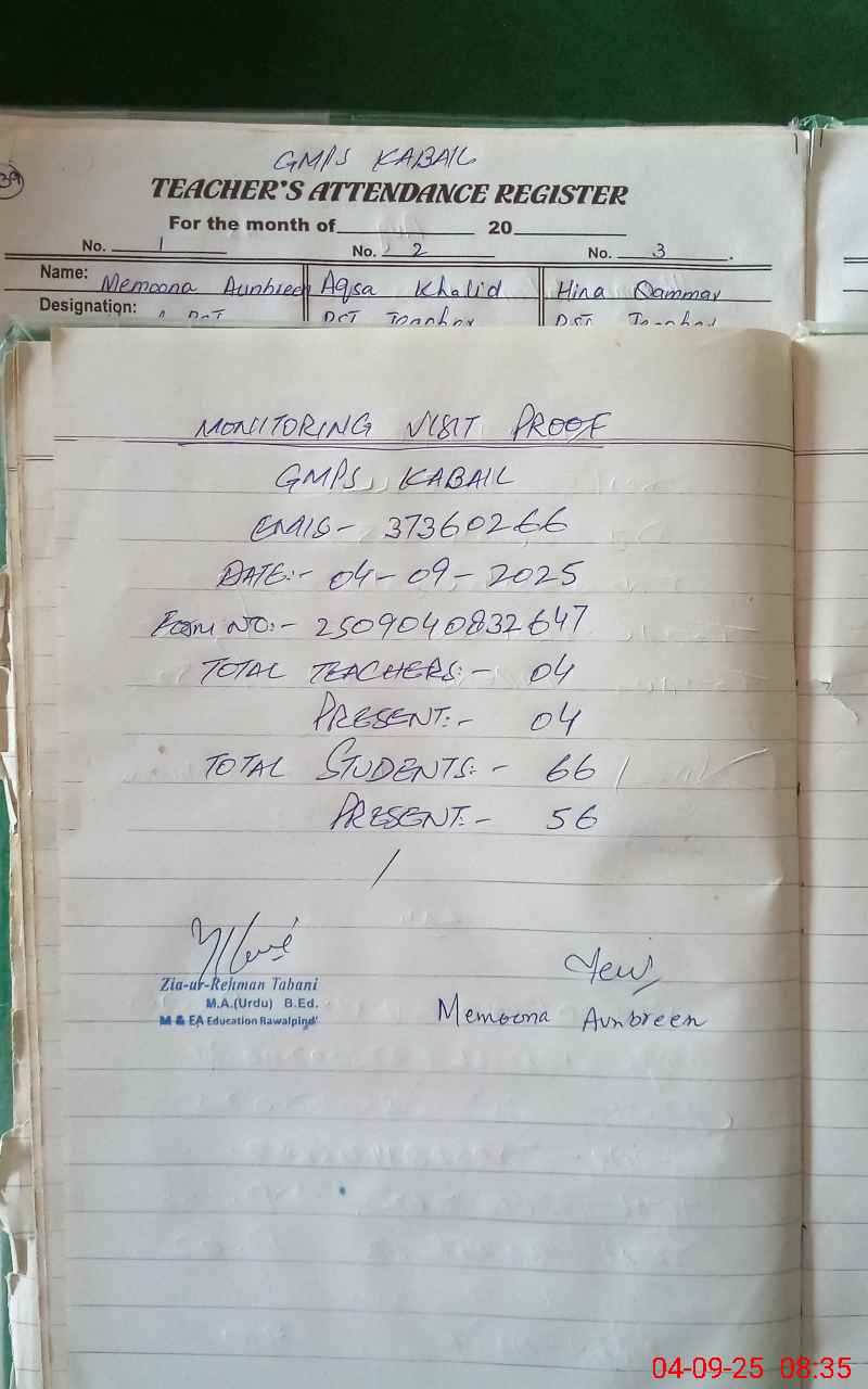| EMIS Code: 37360266 | Name of School: GMPS KABAIL | |||