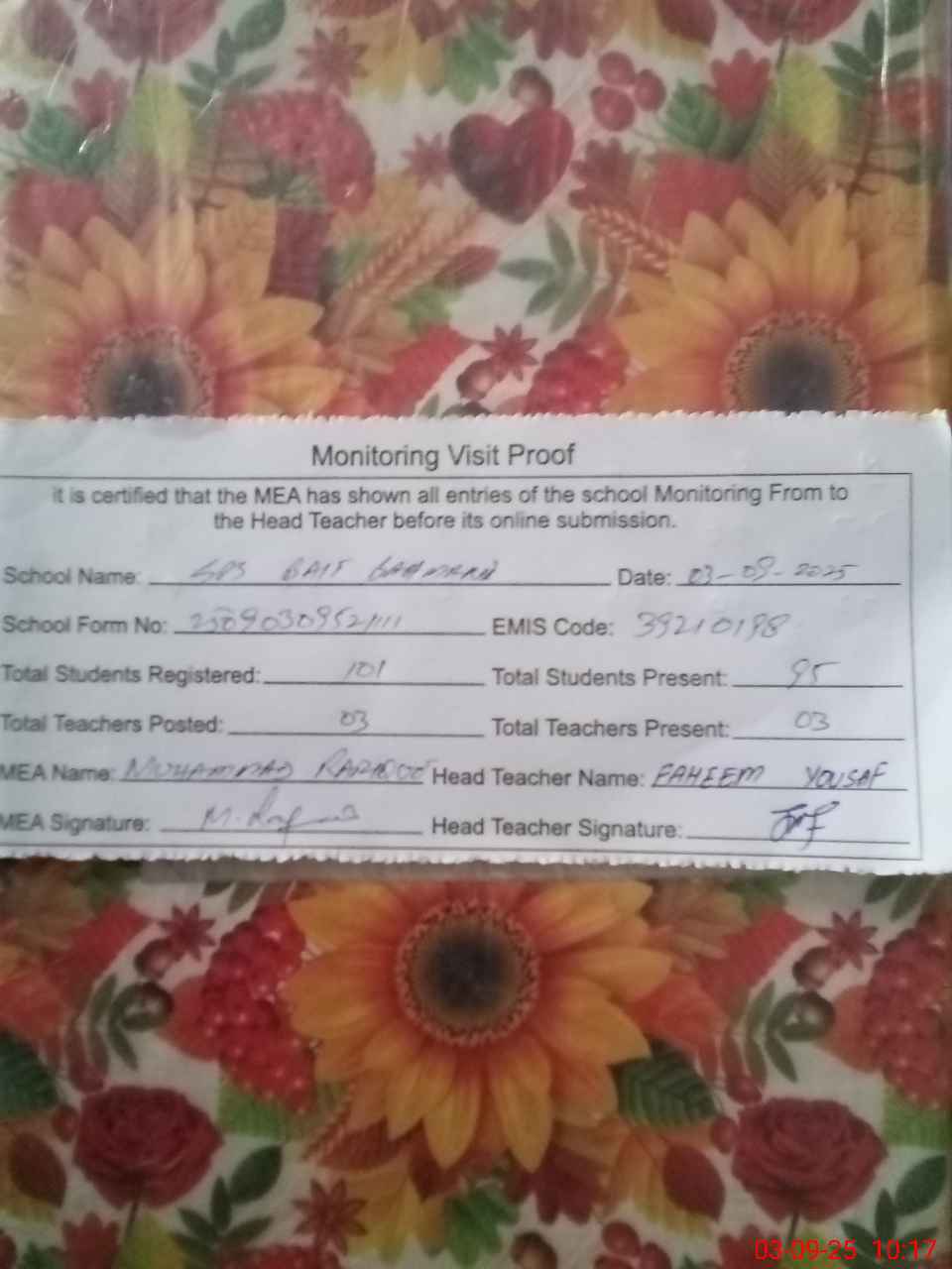 | EMIS Code: 39210198 | Name of School: GPS BAIT BAHMANI | |||