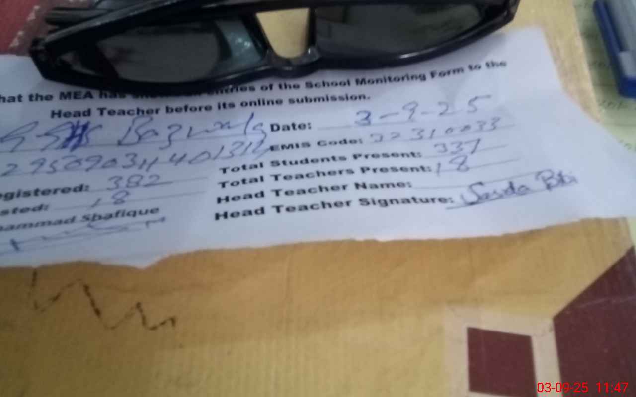 | Name: KH**** FA**** Designation: (School Headmaster's/Headmistress's) S.S.T.(GEN) Phone/Cell Number: 03**** |