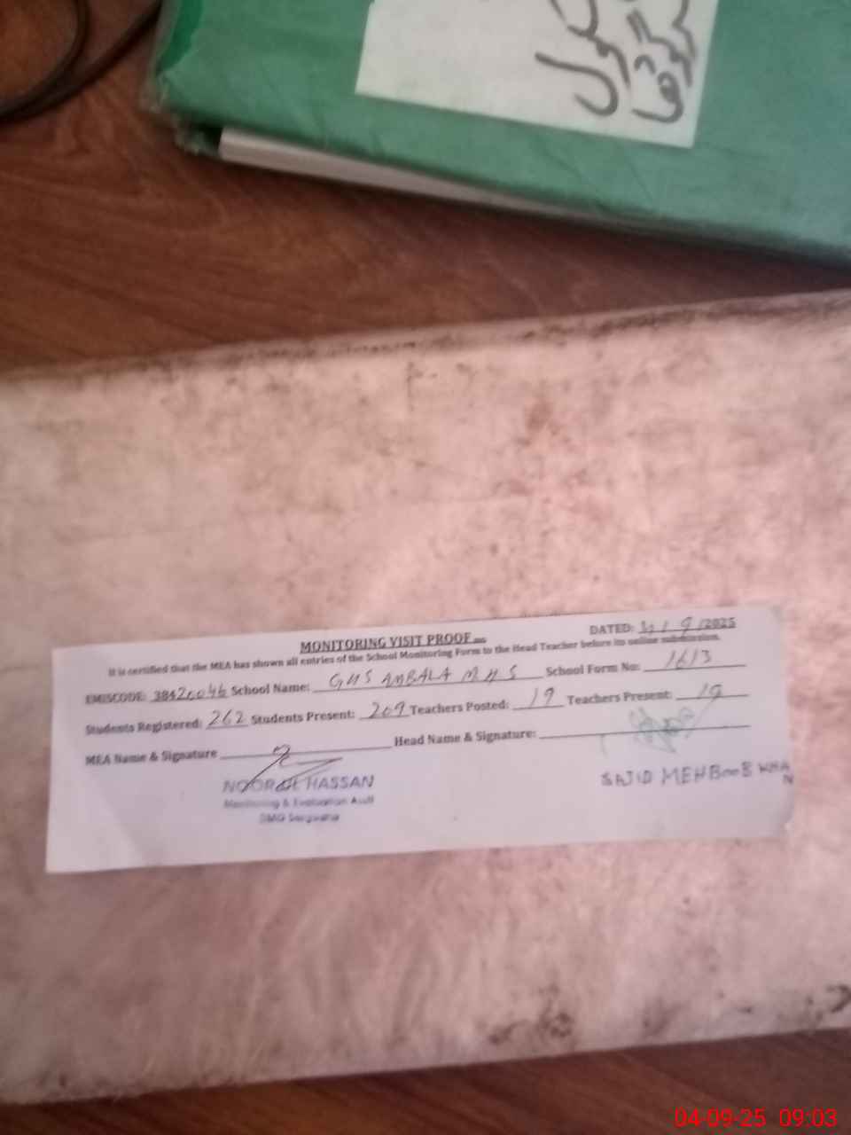 | EMIS Code: 38420046 | Name of School: GHS AMBALA MUSLIM SARGODHA | |||