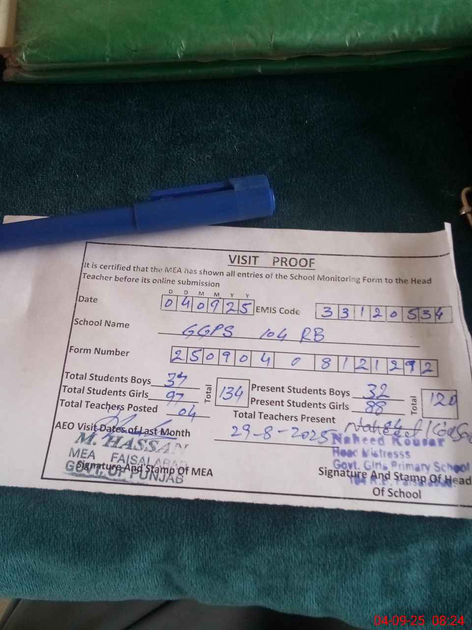 | EMIS Code: 33120534 | Name of School: GGPS 104/RB | |||