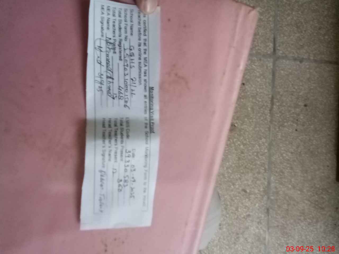 | Name: Za**** Pe**** Designation: (School Headmaster's/Headmistress's) HEADMISTRESS Phone/Cell Number: 03**** |