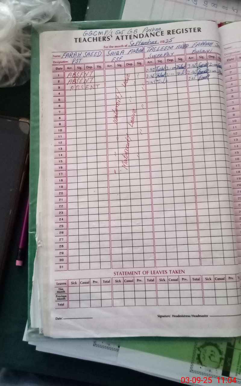 | Attendance Register | Head Teacher | MEA with School | Visit Proof |
