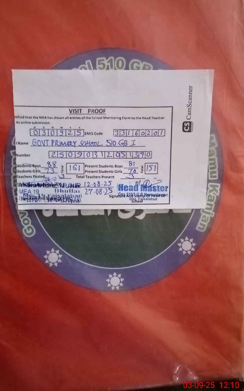 | EMIS Code: 33160201 | Name of School: GPS CHAK 510 GB I MAMUNKANJAN | |||