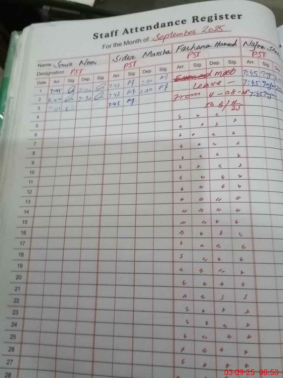 | 35**** | Fa**** Ha**** | PST | Regular | 0 | 0 | 0 | 0 | 0 | 0 | 0 | 0 | 0 | Maternity |