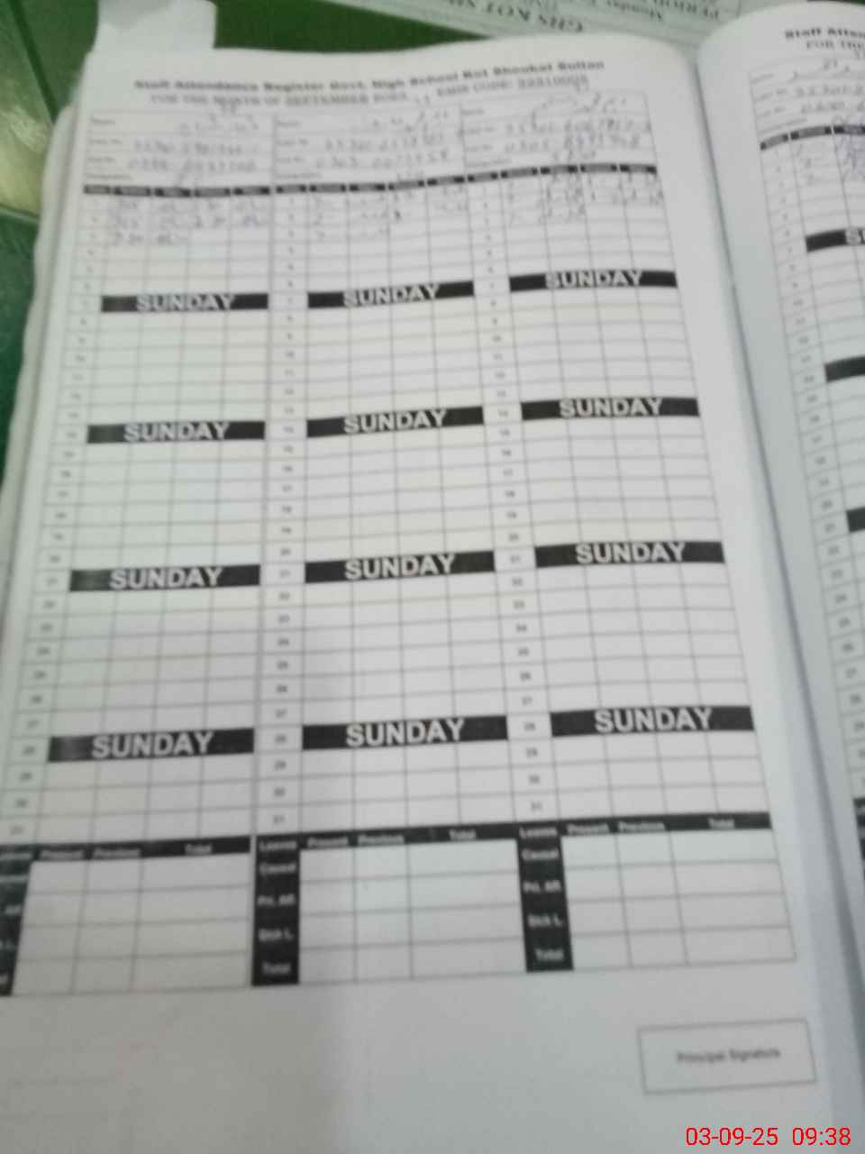 | CNIC | Full Name | Designation | R/C | Absence During Last Calender Month |