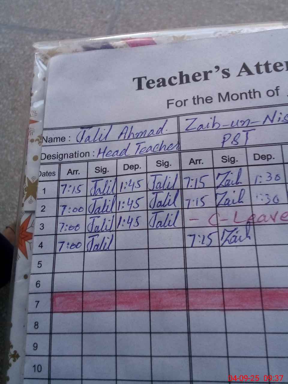 | Name: JA**** AH**** Designation: (School Headmaster's/Headmistress's) PST Phone/Cell Number: 03**** |