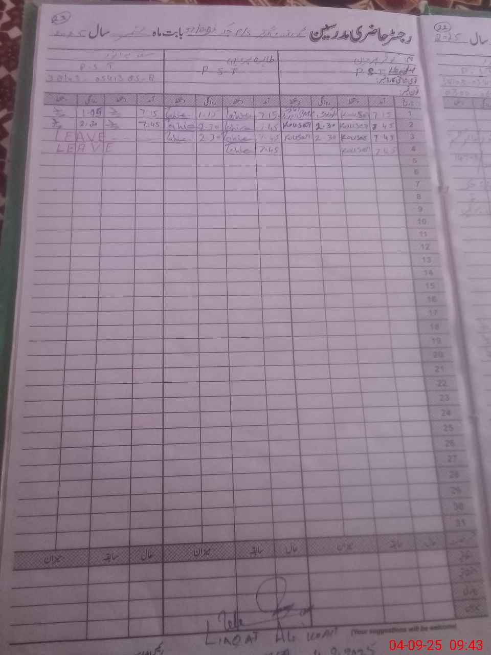 | 38**** | Sa**** An**** | PST | Regular | 0 | 0 | 0 | 0 | 0 | 0 | 0 | 0 | 0 | Casual |