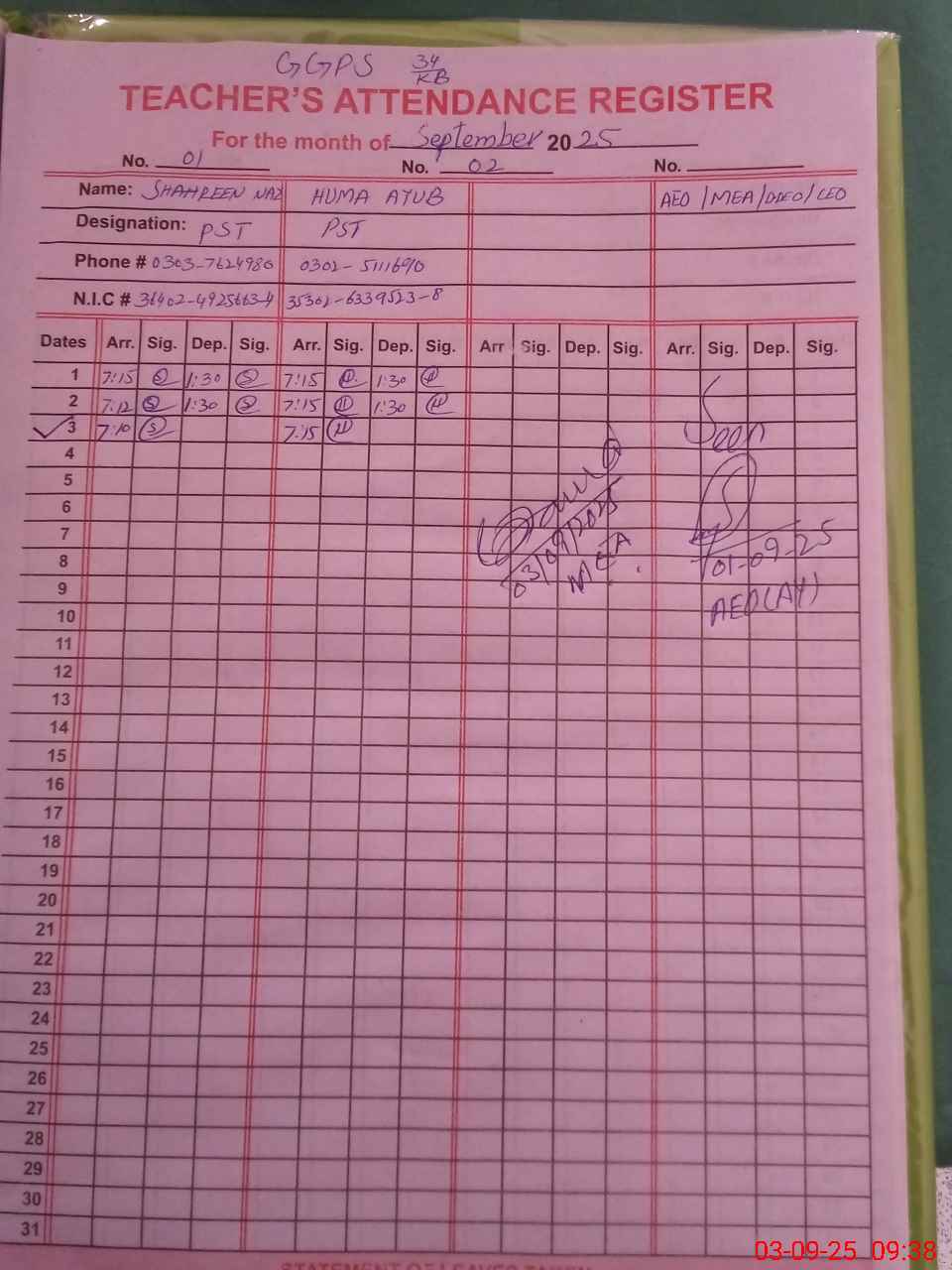 | Name: SH**** NA**** Designation: (School Headmaster's/Headmistress's) PST Phone/Cell Number: 03**** |