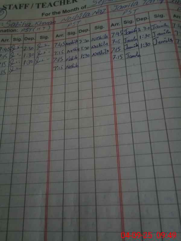 | Name: Zu**** Al**** Za**** Designation: (School Headmaster's/Headmistress's) PST Phone/Cell Number: 03**** |