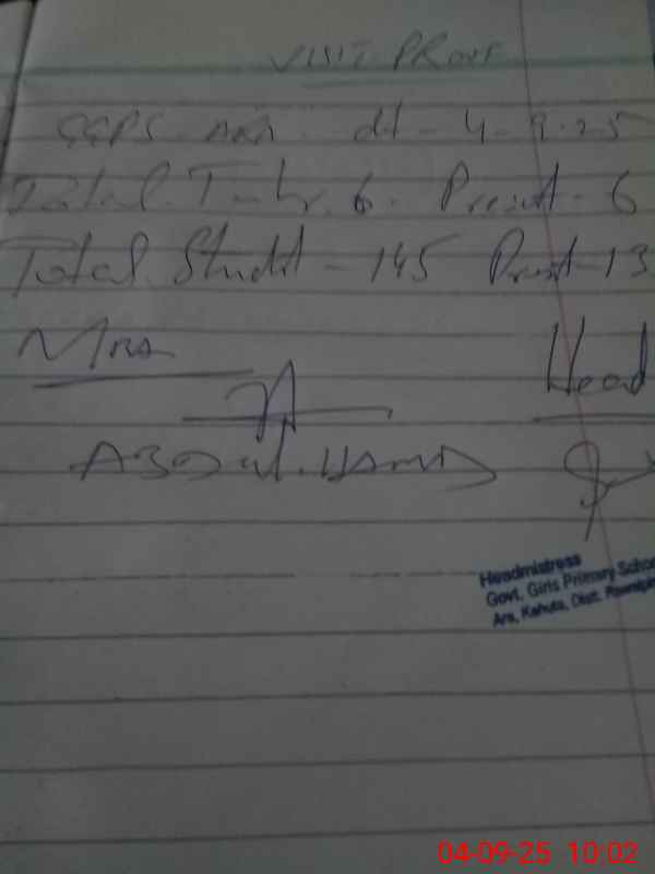 | Attendance Register | Head Teacher | MEA with School | Visit Proof |
