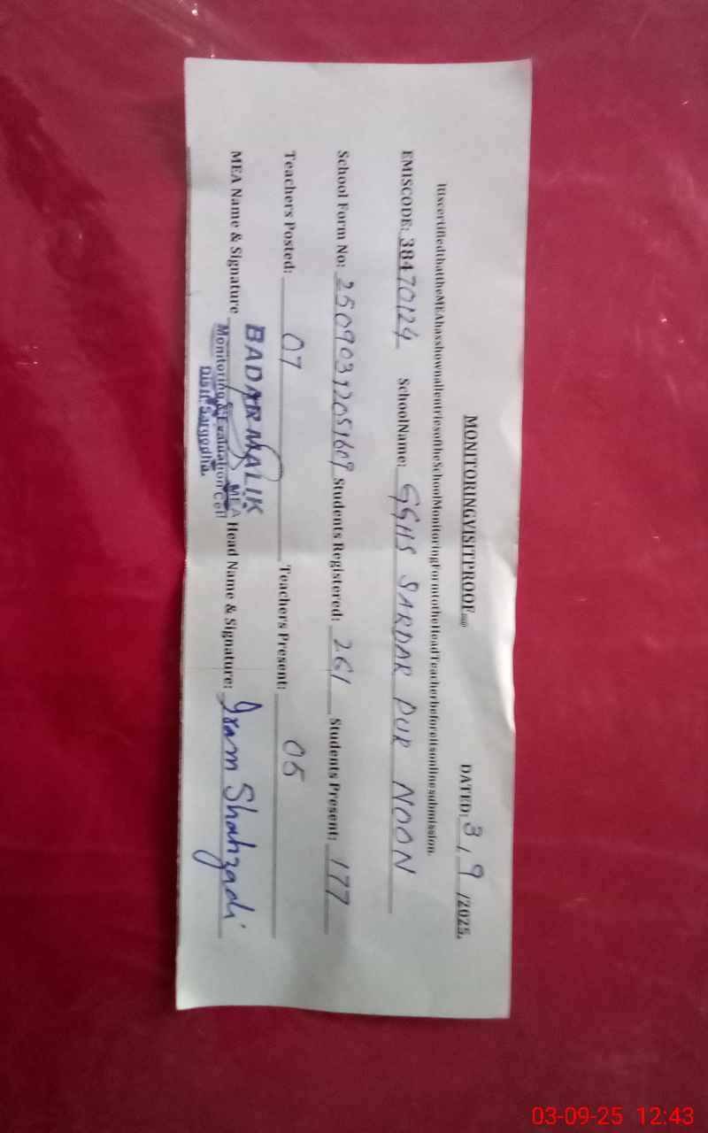 | EMIS Code: 38470124 | Name of School: GGHS SARDAR PUR NOON | |||