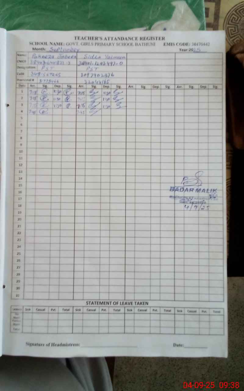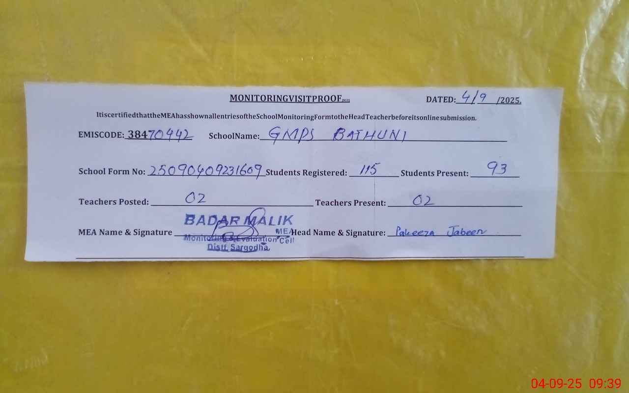 | EMIS Code: 38470442 | Name of School: GMPS BATHUNI | |||