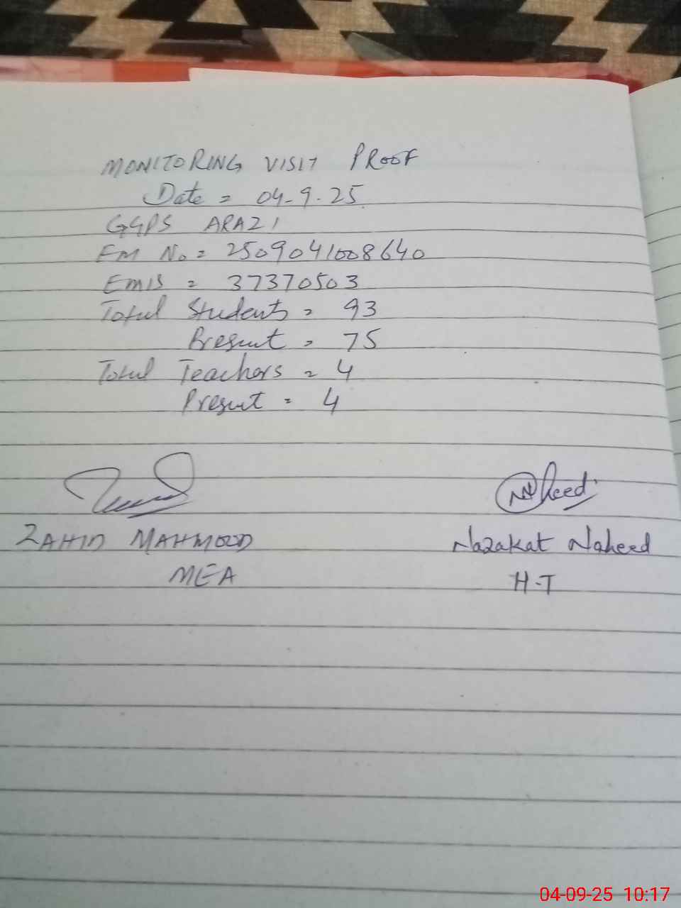 | EMIS Code: 37370503 | Name of School: GGPS ARAZI | |||