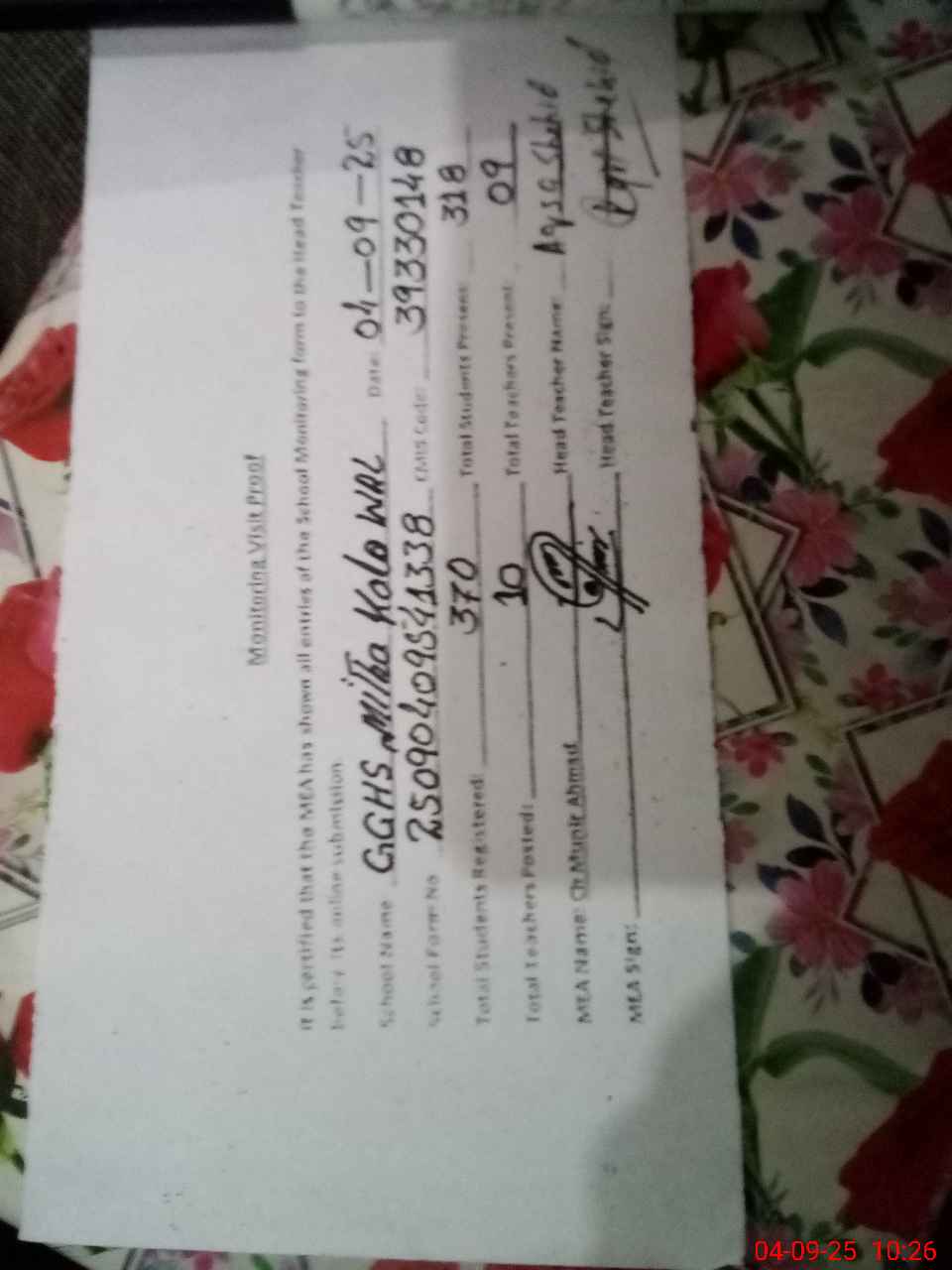 | EMIS Code: 39330148 | Name of School: GGHS MITTHA KALOWAL | |||