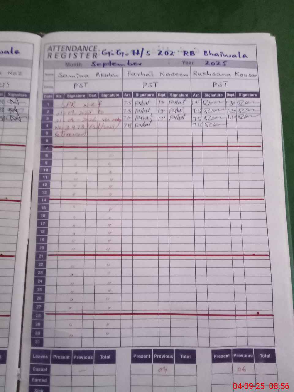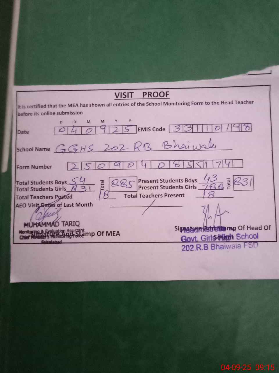 | EMIS Code: 33110198 | Name of School: GGHS CHAK 202 RB BAHAIWALA | |||