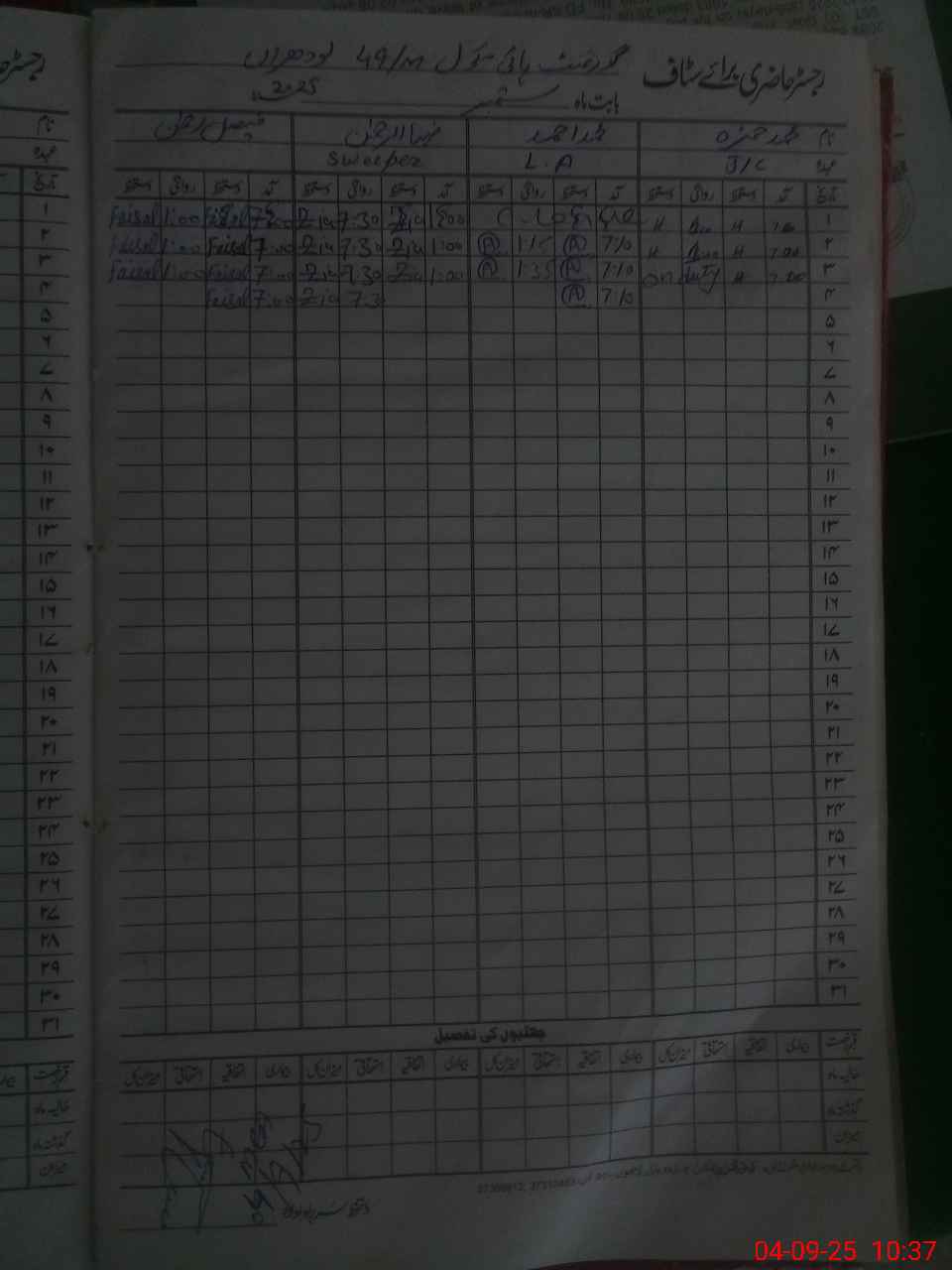 | CNIC | Full Name | Designation | R/C | Absence During Last Calender Month |
