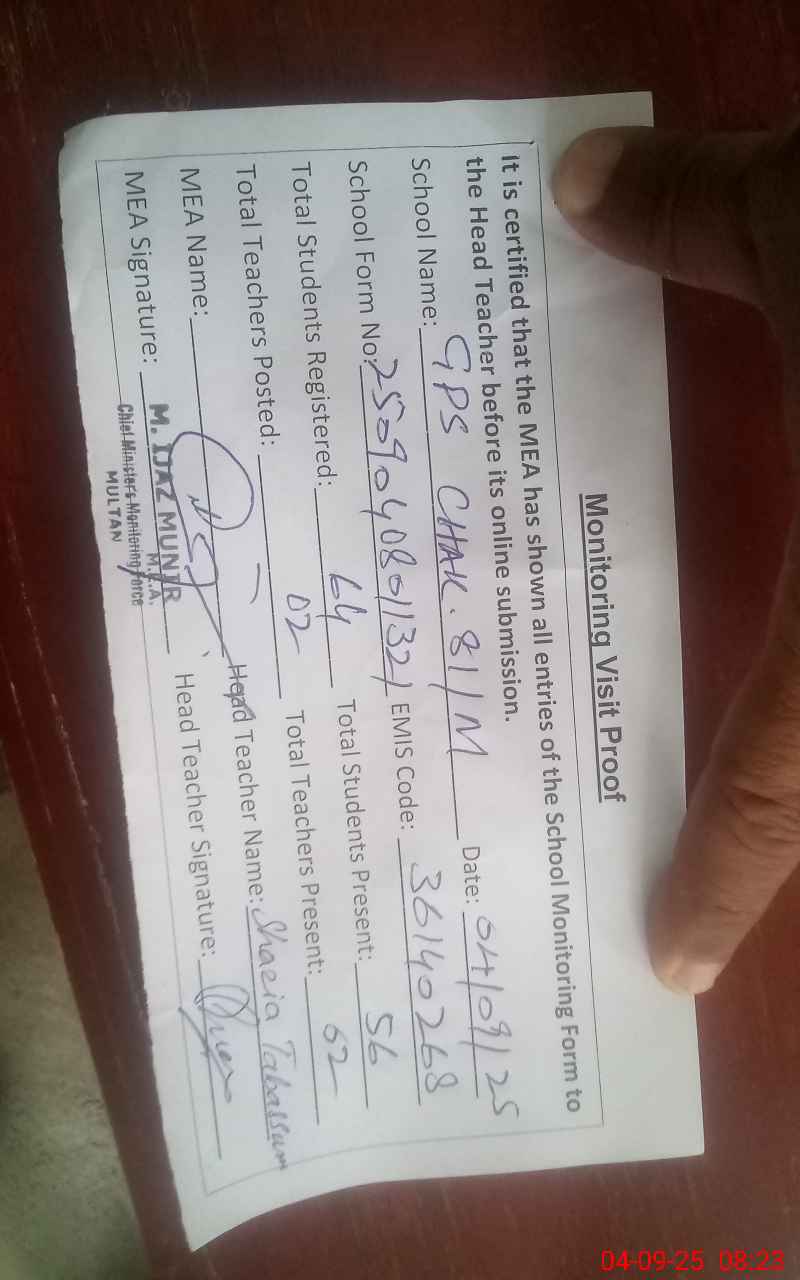 | EMIS Code: 36140268 | Name of School: GPS CHAK 81/M JALALPUR PIRWALA | |||