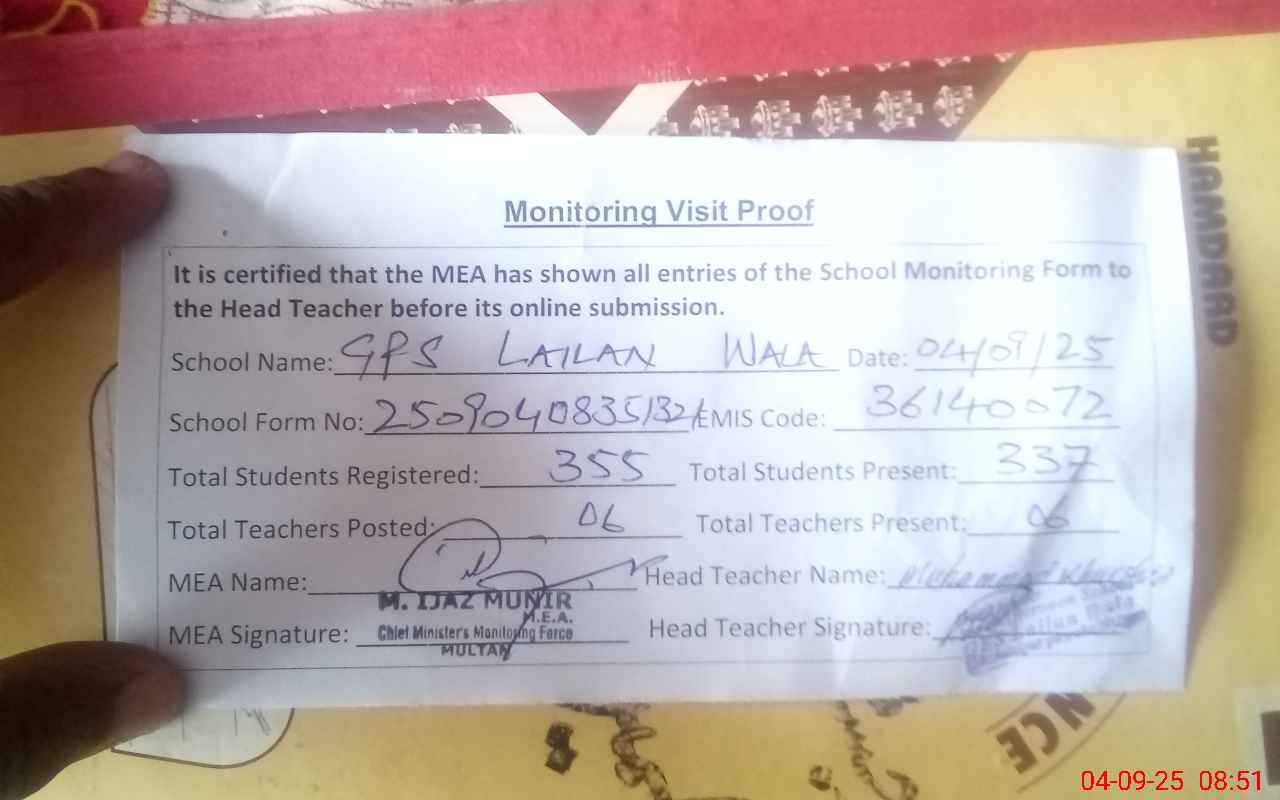 | EMIS Code: 36140072 | Name of School: GPS LAILAN WALA P/O JALAL PUR PIR WALA | |||