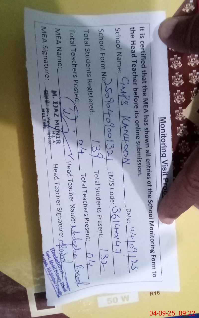 | EMIS Code: 36140147 | Name of School: GMPS KANHOON | |||