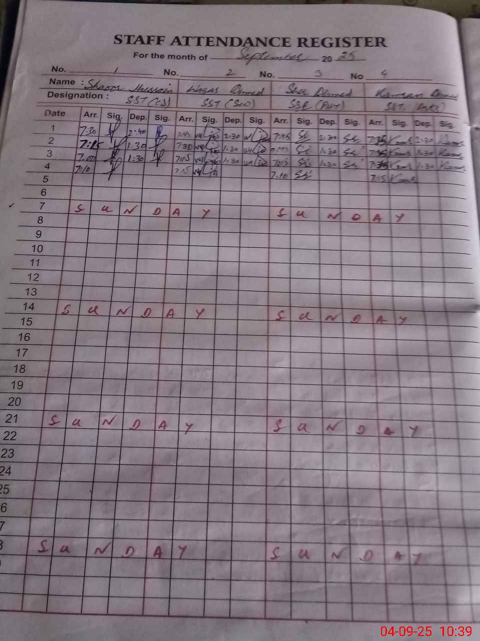 | 37**** | Kh**** Ah**** | NAIB QASID | Regular | 0 | 0 | 0 | 0 | 0 | 0 | 0 | 0 | 0 | Casual |