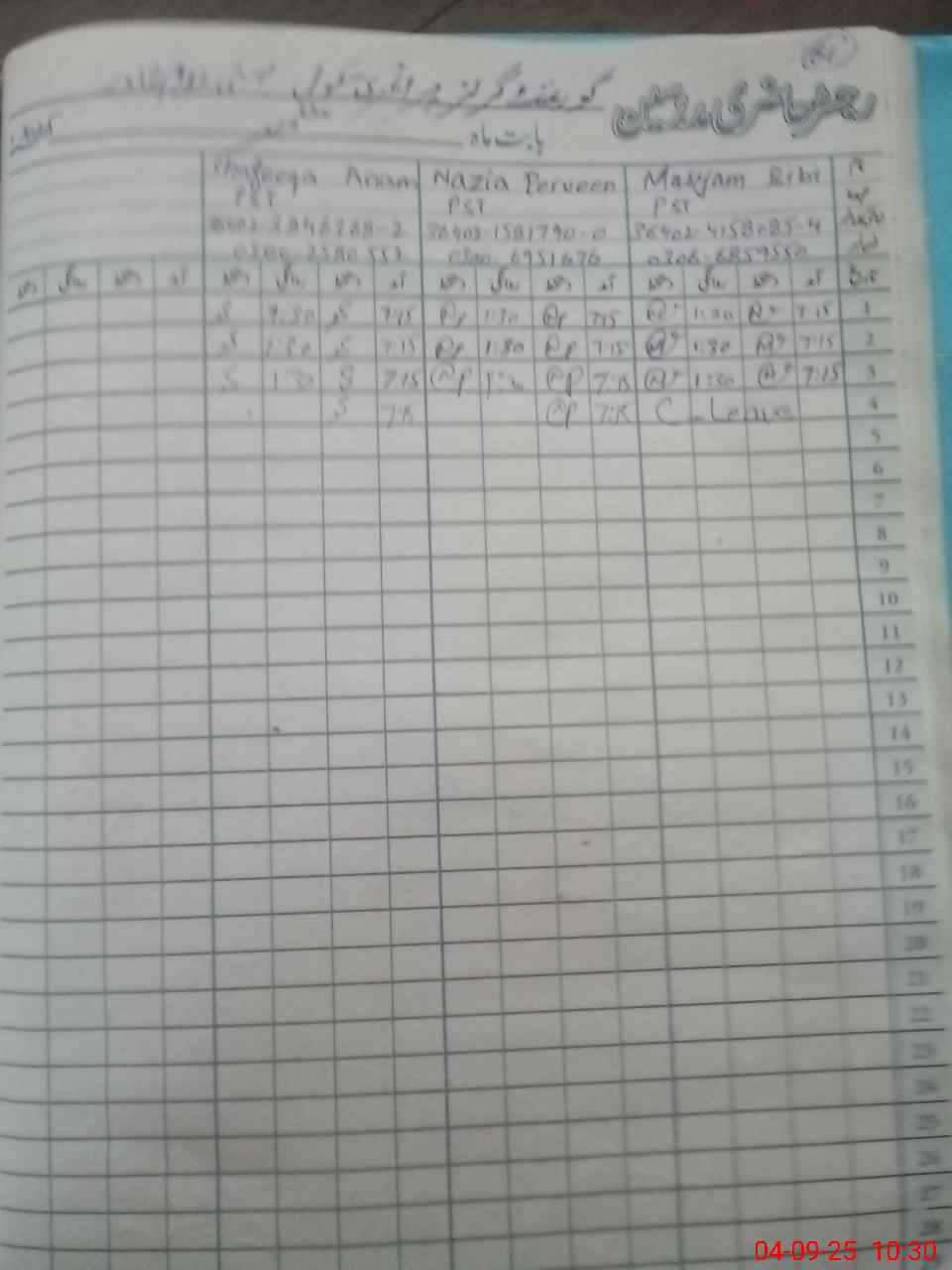 | Name: Sh**** An**** Designation: (School Headmaster's/Headmistress's) PST Phone/Cell Number: 03**** |