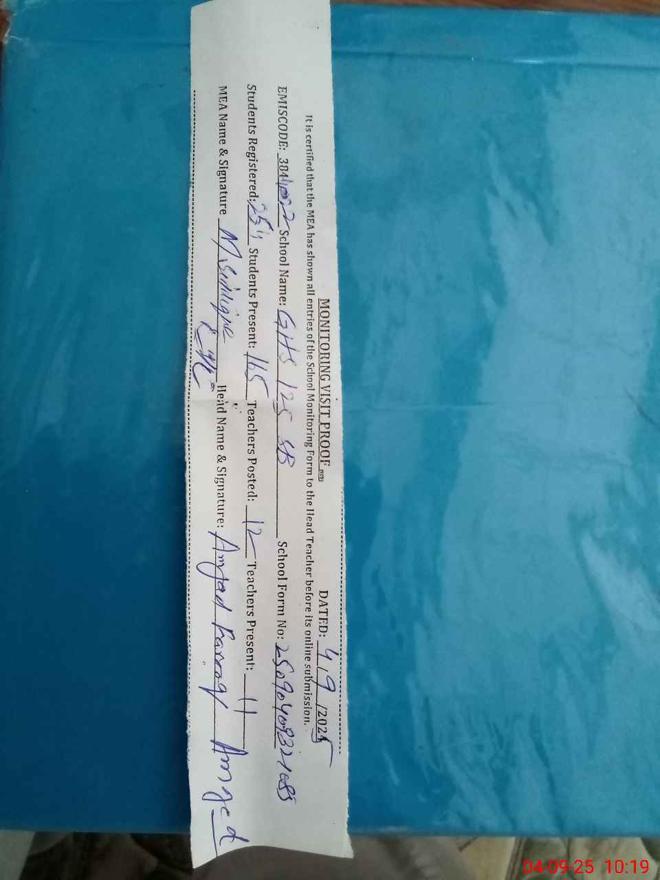 | EMIS Code: 38440022 | Name of School: GHS CHAK NO.125 SB | |||