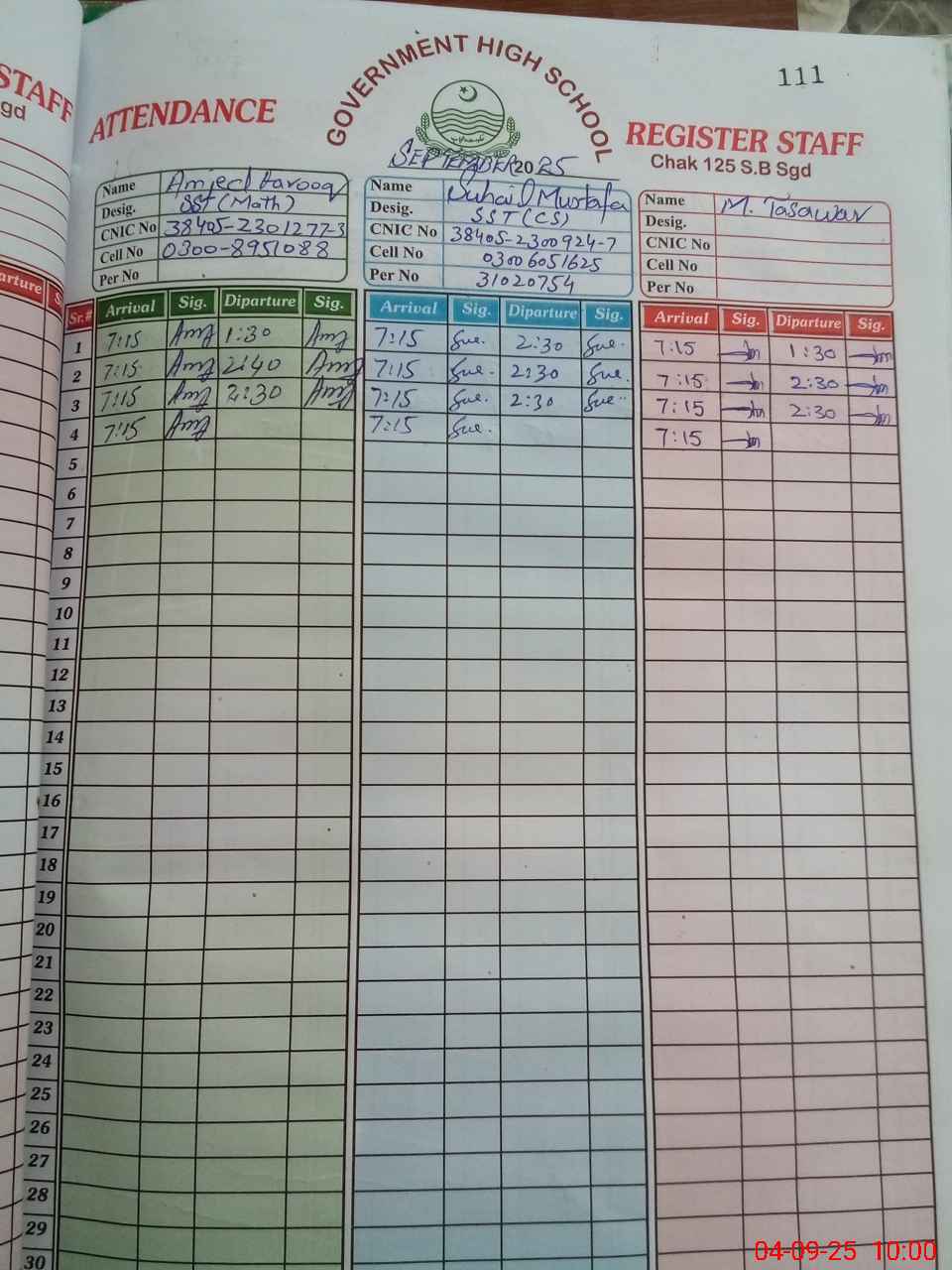 | Name: AM**** FA**** Designation: (School Headmaster's/Headmistress's) S S T Sst Sci Phone/Cell Number: 03**** |