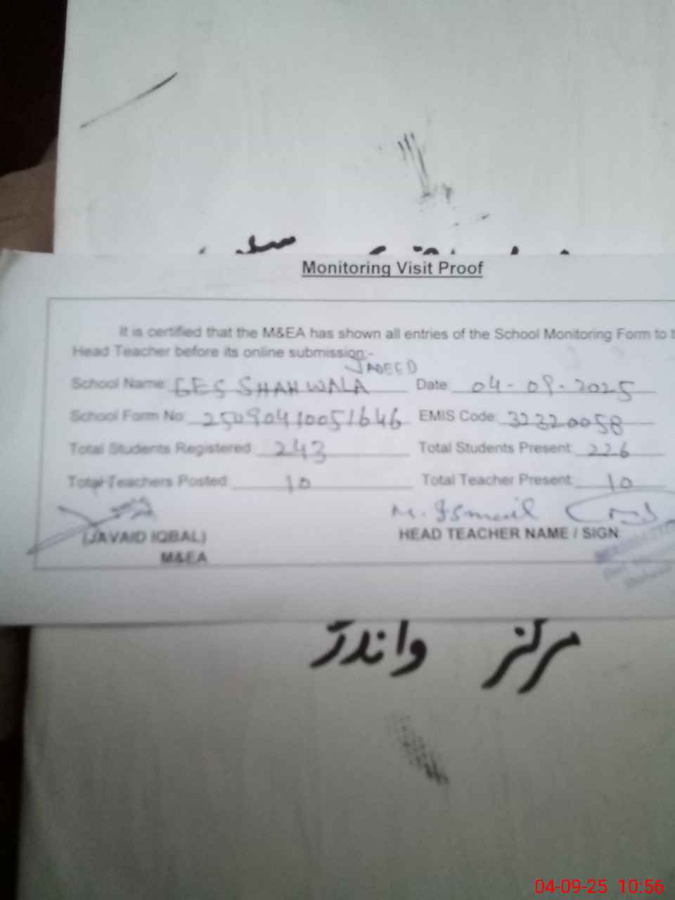 | EMIS Code: 32320058 | Name of School: GES SHAH WALA JADEED | |||